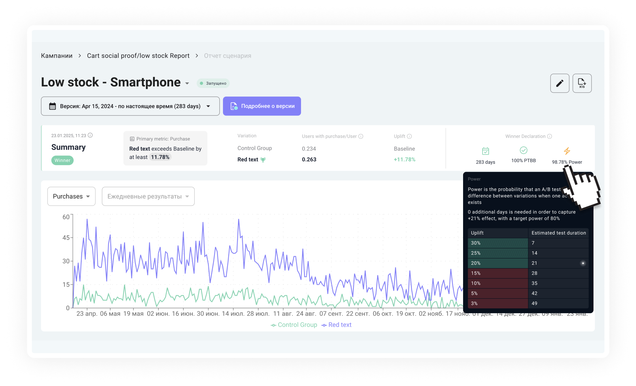 ΠΠΎΠ΄ΡΠΎΠ±Π½ΡΠ΅ Π΄Π°Π½Π½ΡΠ΅ ΠΎ Π²ΠΎΠ²Π»Π΅ΡΠ΅Π½Π½ΠΎΡΡΠΈ, ΠΏΠΎΠ²Π΅Π΄Π΅Π½ΠΈΠΈ ΠΈ ΡΠ΅Π·ΡΠ»ΡΡΠ°ΡΠ°Ρ ΠΌΠ΅Ρ Π°Π½ΠΈΠΊ. ΠΡΡΡΠΎΠ΅Π½Π½ΡΠ΅ ΠΈΠ½ΡΡΡΡΠΌΠ΅Π½ΡΡ A/B-ΡΠ΅ΡΡΠΈΡΠΎΠ²Π°Π½ΠΈΡ Π΄Π»Ρ ΠΏΠΎΠΈΡΠΊΠ° ΠΎΠΏΡΠΈΠΌΠ°Π»ΡΠ½ΡΡ ΡΠ΅ΡΠ΅Π½ΠΈΠΉ.